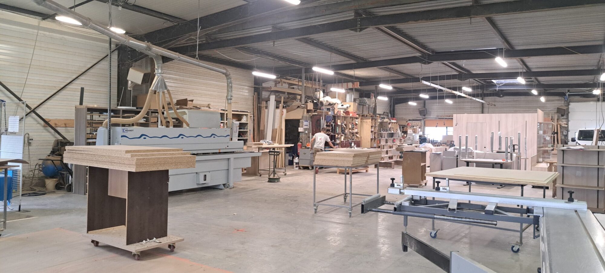 Pour optimiser la réalisation de votre projet, notre atelier de 1 000 m2 permet de concevoir toutes les réalisations. Une équipe qualifiée ainsi que des machines de conception de haute qualité façonnent et créent les meubles sur mesure.